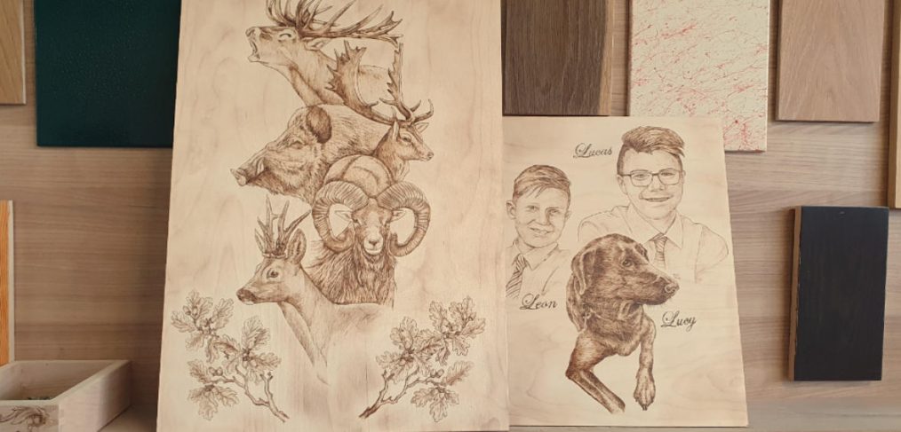 Neu bei uns: echtes Kunsthandwerk – die Brandmalerei. Sie möchten ein außergewöhnliches Kunstwerk auf Holz, mit Bild und/oder Texten von Ihrem Lieblingstier, Haus, Fahrzeug oder ähnlichem? Auf einem ausgewählten Gegenstand oder besonders edlem Holz? Gerne unterbreiten wir Ihnen ein individuelles Angebot. Sprechen Sie uns an.